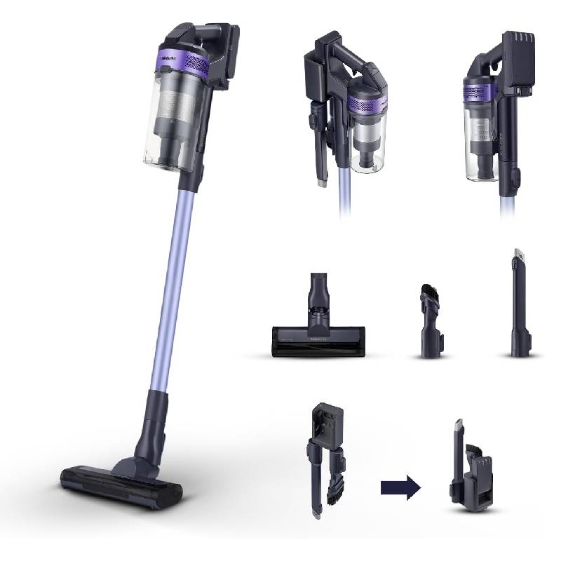 - Ce produit est décrit par une variété de caractéristiques, à savoir: Fabricant aspirateur Samsung, Type d'aspirateur Balai, Couleur aspirateur Noir & Violet, Garantie aspirateur 1 an,