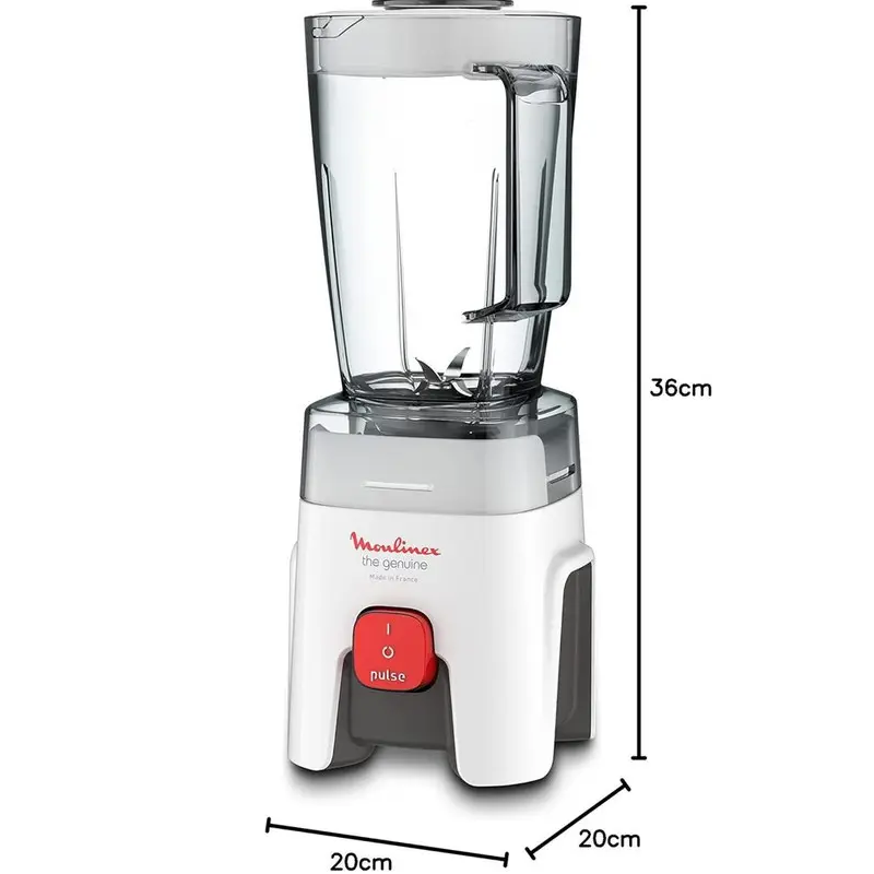 - Ce produit est décrit par une variété de caractéristiques, à savoir: Fabricant blender Moulinex, Puissance blender 500 W, Nombre de vitesses blender 1, Capacité du bol blender 1.5 L, Couleur blender Blanc, Garantie blender 1 an,