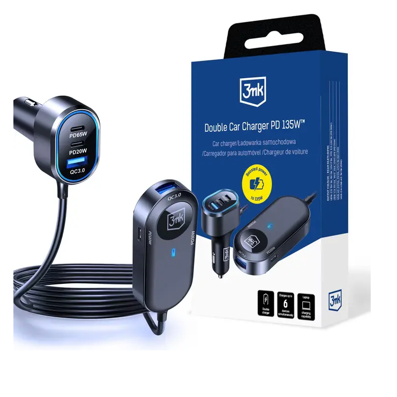- Ne manquez pas notre offre au meilleur prix en Tunisie sur Chargeur de voiture double 3MK 135 W PD QC PPS USB-C USB-A Noir - 5903108605502.