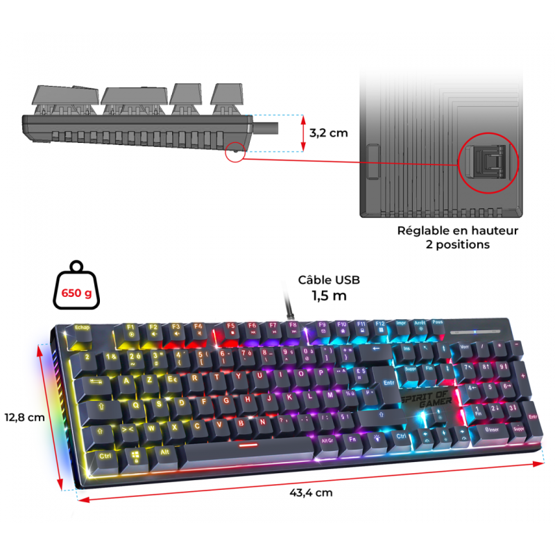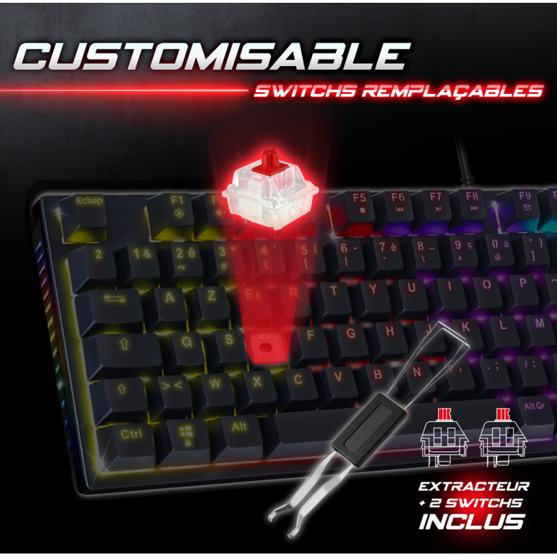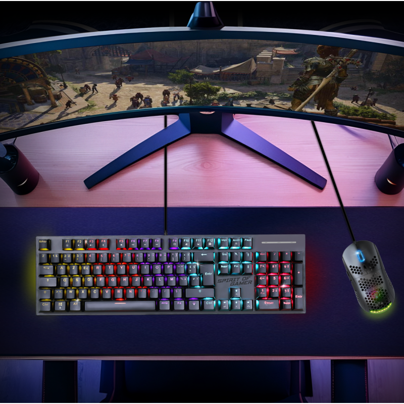 - Ce produit est décrit par une variété de caractéristiques, à savoir: Fabricant clavier gamer Spirit Of Gamer, Connectivité clavier filaire, Type de clavier gamer mecanique,