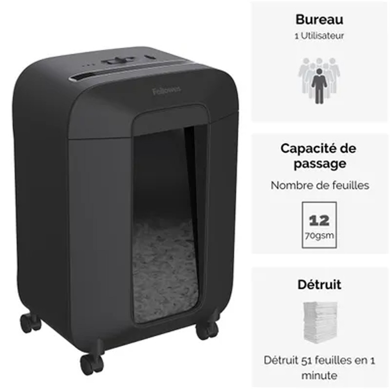 Destructeur Powershred de Documents Fellowes LX-85 Coupe Croisée – Noir – FEL-DEST39