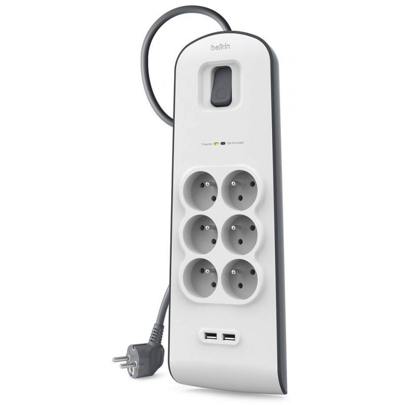 Multiprise Parafoudre Belkin 6 Prises Avec 2 Ports Usb 2.4 A – Blanc & Gris – BSV604VF2M-V2