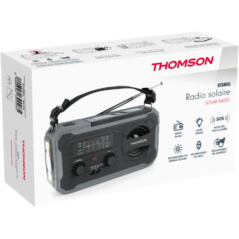 Radio solaire d’urgence Thomson Longue Durée -Gris – RT280G