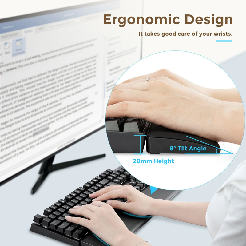 -Conception ergonomique dédiée au soin du poignet lors d’une utilisation prolongée du clavier, que ce soit pour jouer ou taper.