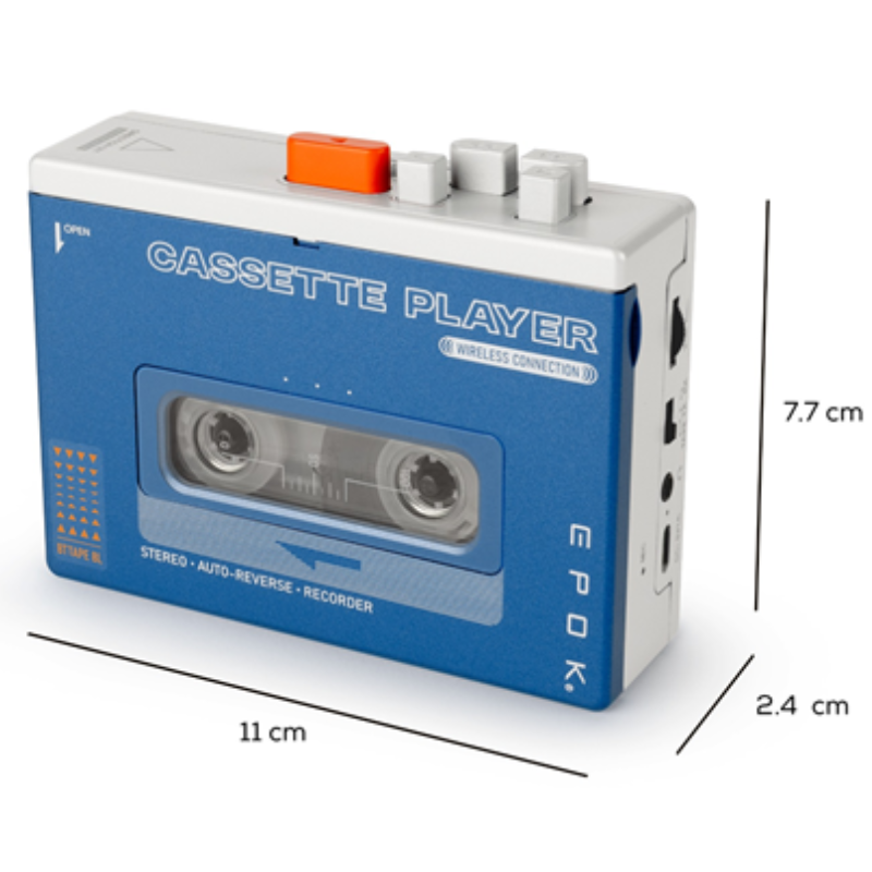 Rewind EPOK + Baladeur cassette sur batterie rechargeable Bluetooth -Bleu – BTTAPEBL