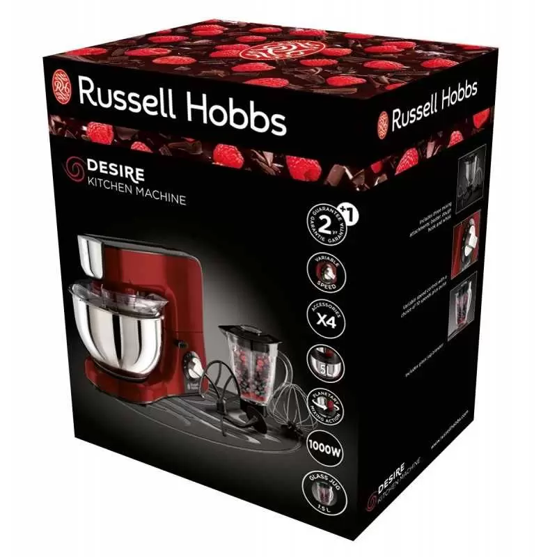 - Ce produit est décrit par une variété de caractéristiques, à savoir: Fabricant robot Russell Hobbs, Capacité du bol robot 5 L, Puissance robot 1000 W, Couleur robot Rouge, Garantie robot 2 ans,