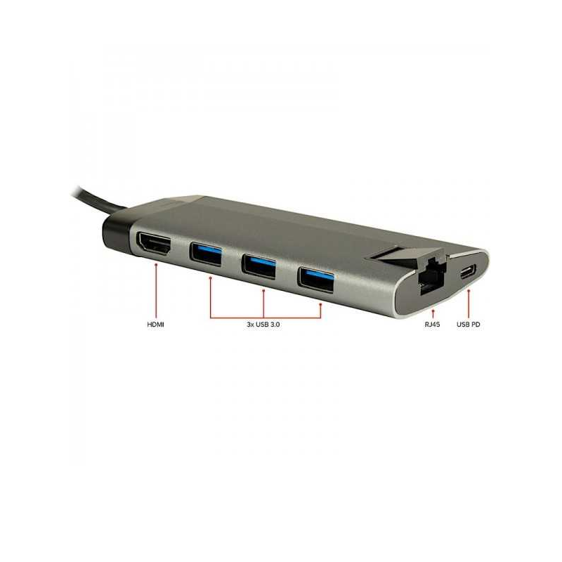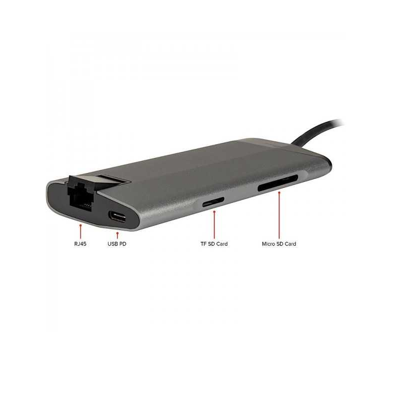 – Caractéristiques :Câble de connexion USB Type C (30 cm de long) ,Prend en charge la version PD 3.0,1x prise réseau RJ45 Gigabit ,Sortie HDMI 4K (3840×2160@30Hz), Station d’accueil USB 3.0 Type A à 3 voies , Lecteur de carte intégré pour Micro SD (TF) ou SD/MMC
